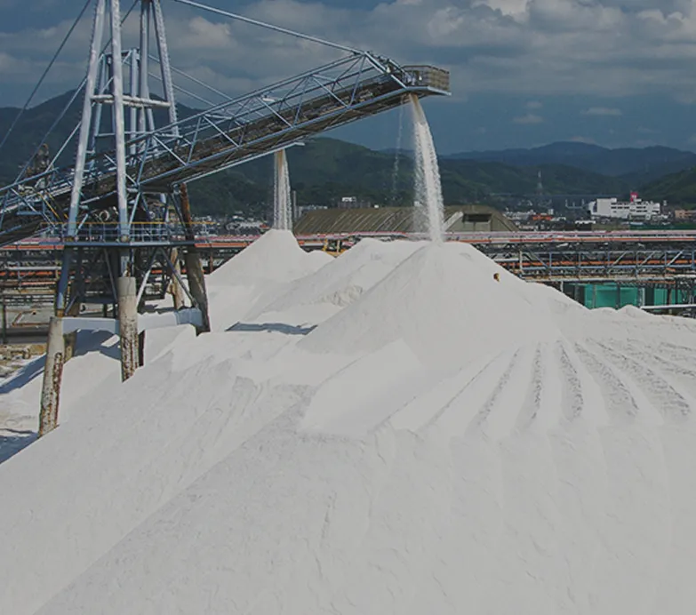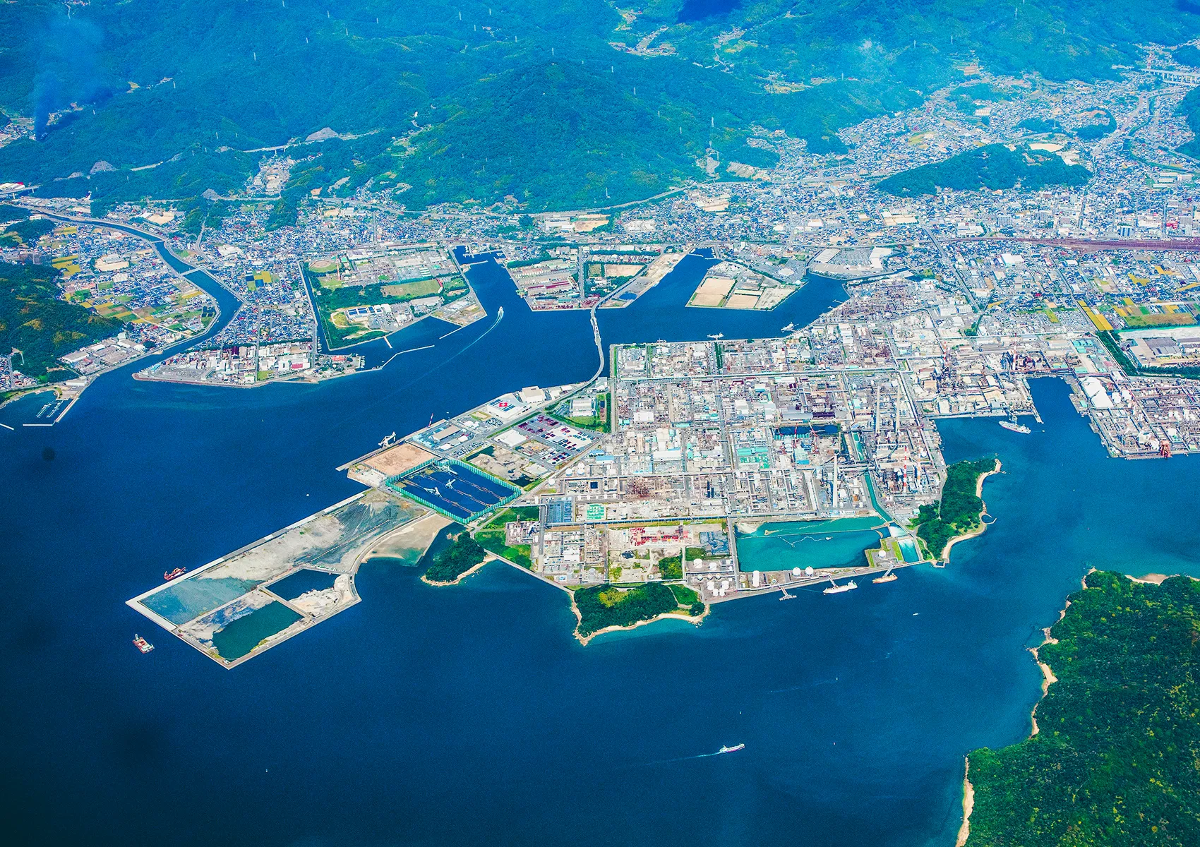 山口県にある南陽事業所は、東京ドーム約62個分の敷地面積を誇る「日本最大級の化学工場」です。3km×2kmもの広大な敷地には、東ソーの礎であるクロル・アルカリ事業に欠かせない原塩や、自家発電設備の燃料として使用される石炭が山のように積み上げられています。