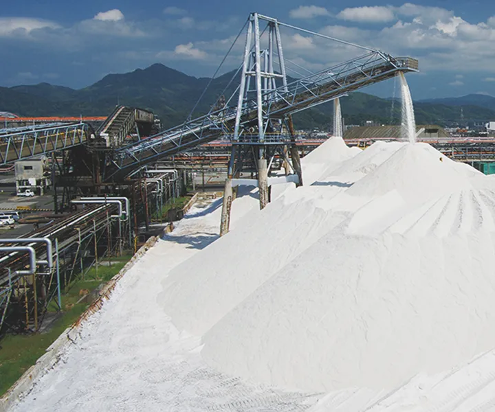 塩の電気分解によって得られる代表的なアルカリ製品で、化学繊維、紙・パルプ、無機化学など、幅広い分野で使用されています。東ソーには、年間131万トンの苛性ソーダ生産能力があり、国内No.1の地位を築いています。