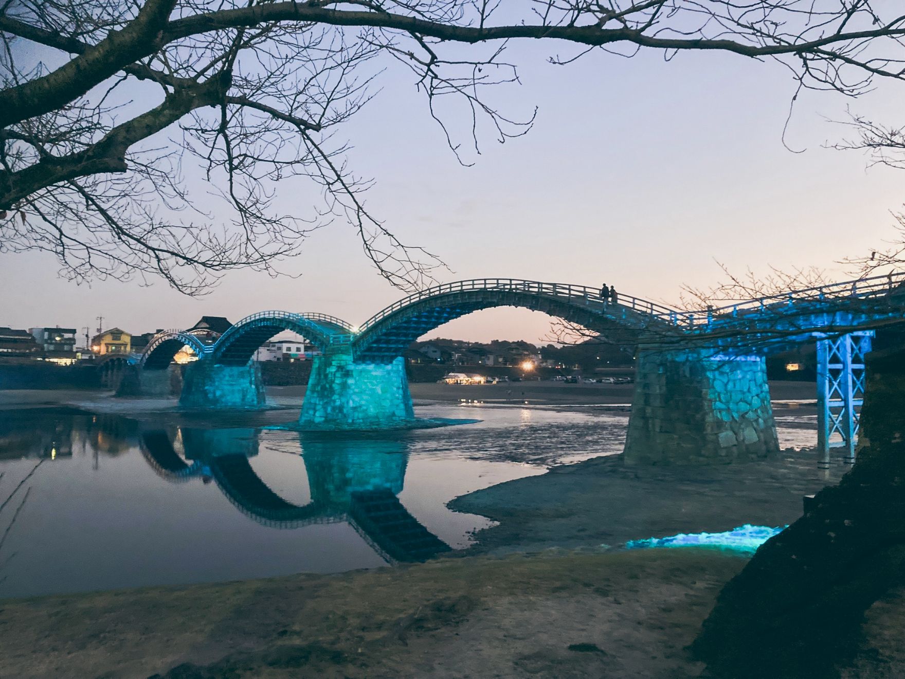 車を購入してから初ドライブで行ったのが、この錦帯橋。日本三名橋の一つで春は綺麗な桜がおすすめです(写真は夜のライトアップ時の様子)。山口県を訪れた際は、ぜひ行ってみてください!