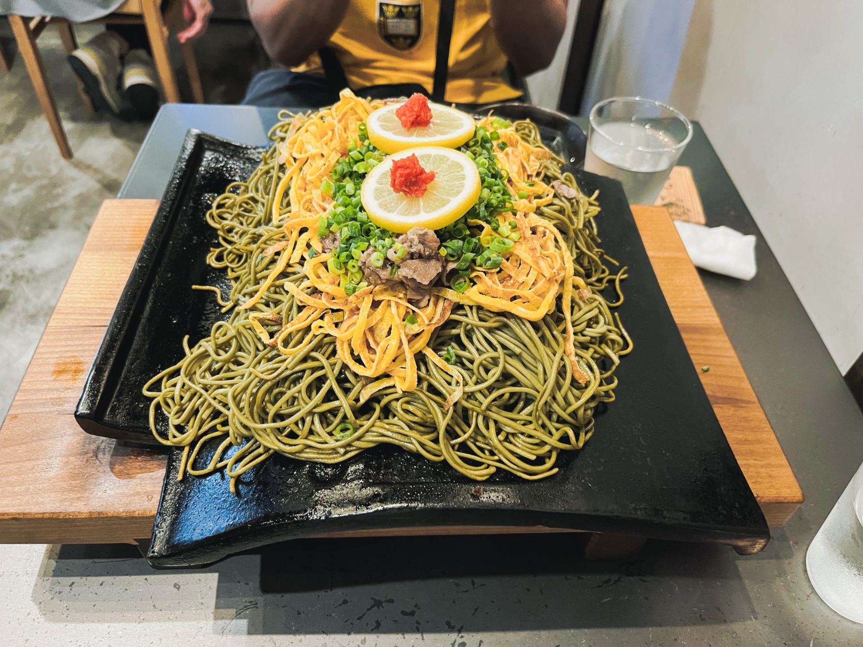 山口県のおすすめグルメといえば瓦そば。熱々の瓦の上に茶そばが敷かれていて、牛肉や錦糸卵と一緒に温かいつゆにつけていただきます。瓦で焼いた茶そばの香ばしい香りや、パリッとした食感を楽しめます。